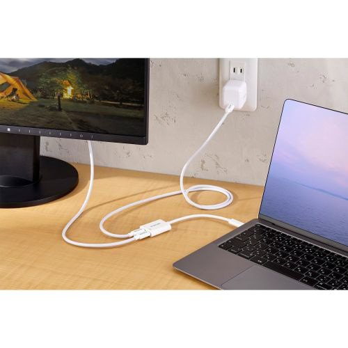 USB Type-C(TM)コネクター搭載のディスプレイなどに映像を出力できる変換アダプターです。USB Type-Cポート搭載パソコンやスマートフォンなどの映像信号を、USB Type-Cコネクター搭載ディスプレイなどに映像を出力することができ、画面複製と画面拡張に対応しています。
