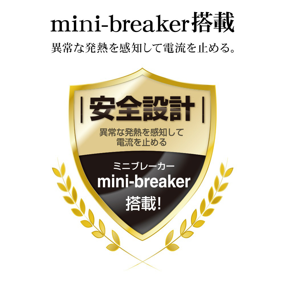 異常な発熱を感知して電流を止めるmini-breakerを搭載しています。