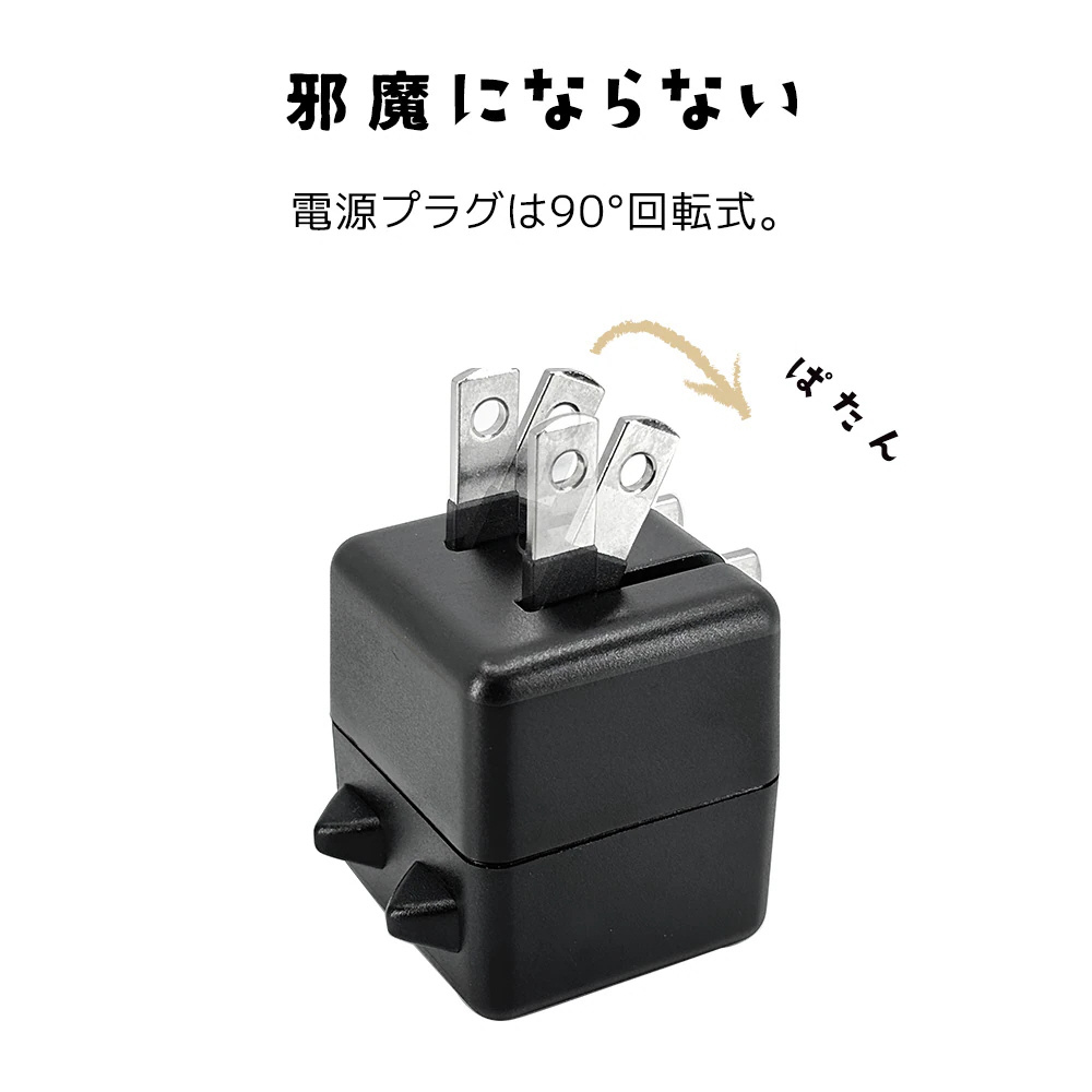 電源プラグは持ち運びに便利な、90°回転収納式を採用。