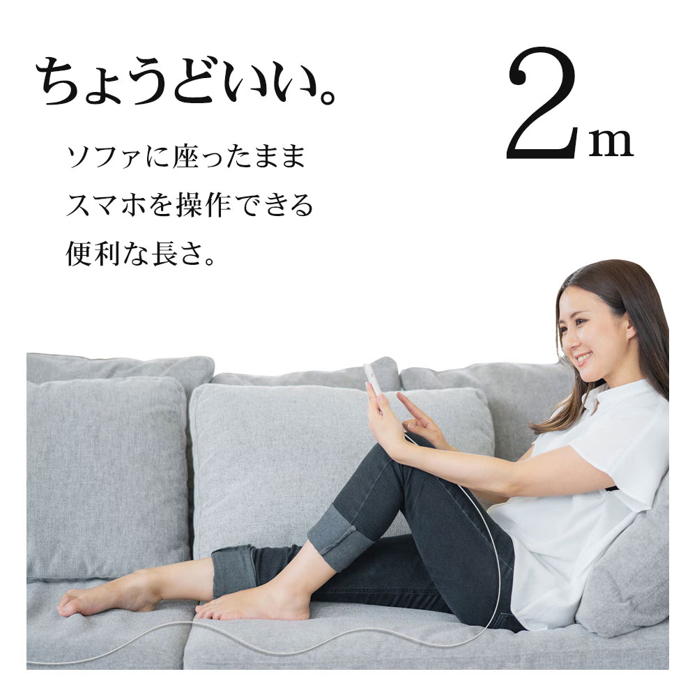 シリコン素材を採用した柔らかく、なめらかな手触りのケーブルです。
