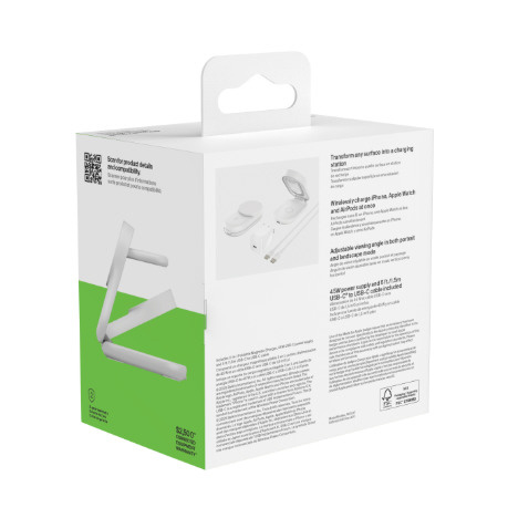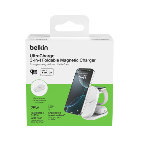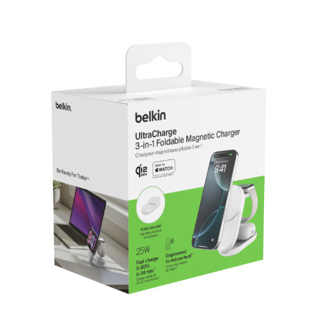 UltraCharge Qi2 25W 3-in-1 折りたたみ式マグネット充電器 ラウンド型 ホワイト WIZ037dqWH
