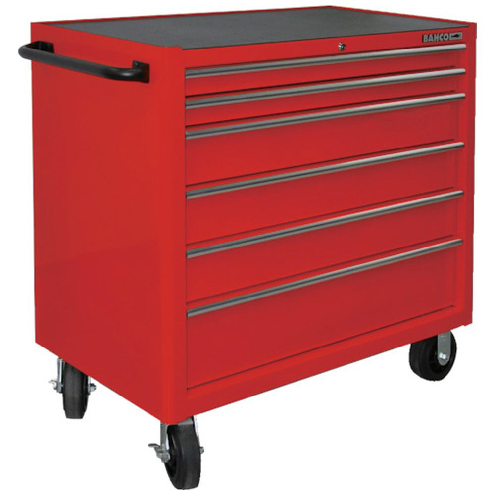 BAHCO 6段引き出し ロールキャブ カーマインレッド ゴムマット仕様天板