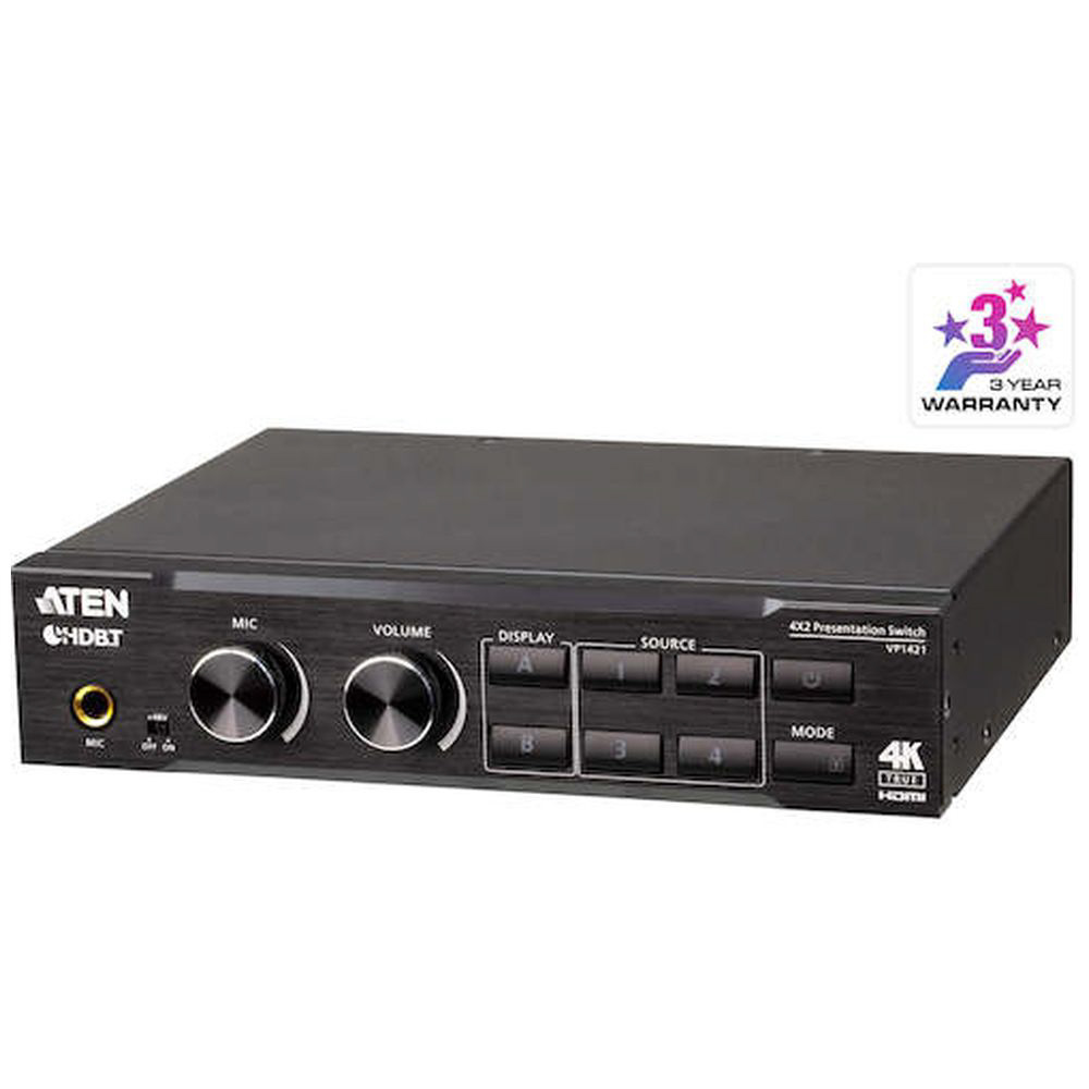 ATEN 4入力2出力 HDBaseT入出力ポート搭載・ミキサー内蔵 マルチインターフェースビデオスイッチ(True4K対応)