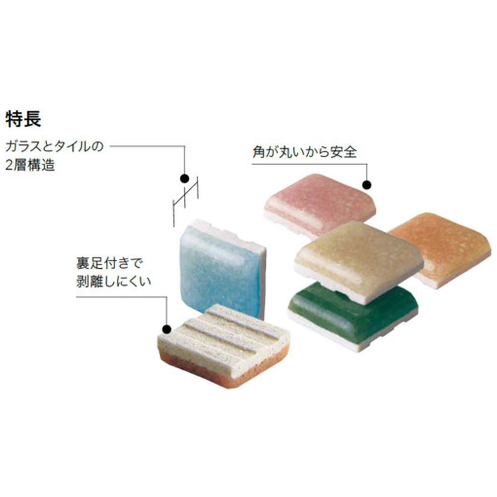 ■裏足付きで剥離しにくいガラスとタイルの2層構造です。