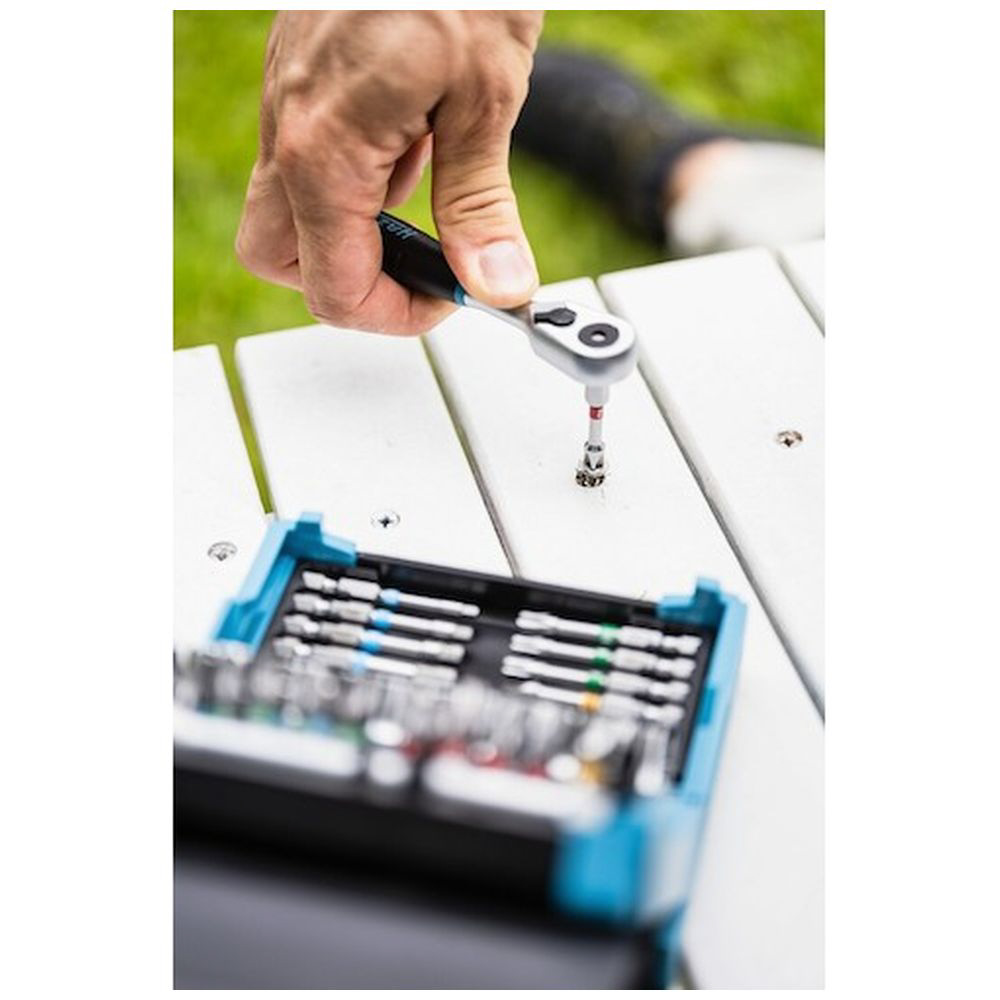 ・ドライブ: 六角形、中実6.3(1/4インチ)、正方形、中空6.3 mm(1/4インチ)出力: 外側の12ポイントトラクションプロファイル、スロットプロファイル、クロスリセスプロファイルPH、PozidrivプロファイルPZ、内側の六角形プロファイル、内側のTORXプロファイルコンパクトで折りたたみ可能なツールセットお手入れが簡単な素材と心地よい表面スリムで軽いテキスタイルケースの利点とハードシェルツールボックスの耐久性を兼ね備えたSMART CASEすばやく開けて摩耗がないマグネチックファスナー簡単にアクセスできるツールストレージ最小スペースで最大数のツールSMART CASEは平らに折りたたむか、テーブルキャストのように立てることが可能ツール数: 50