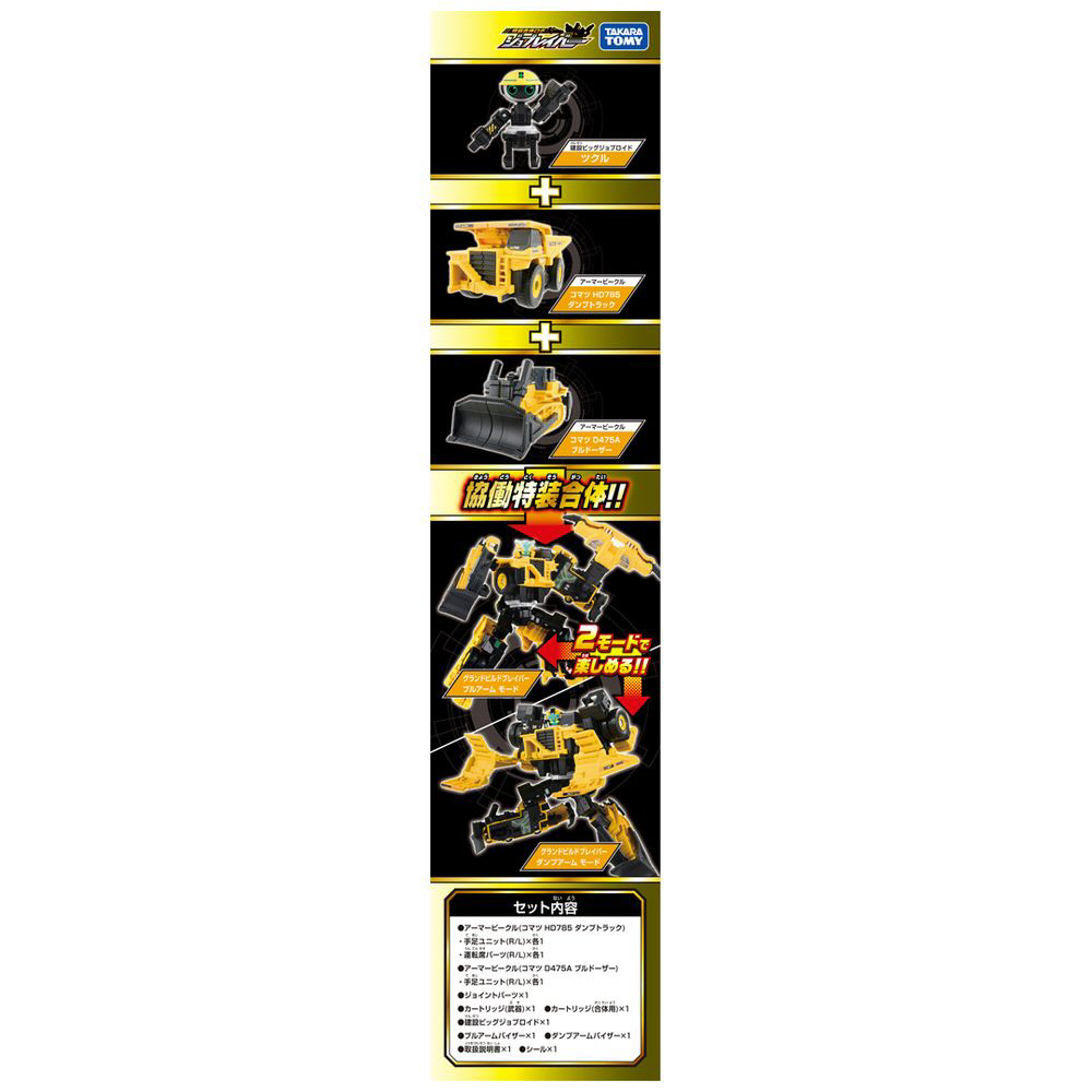 アーマービークル「コマツ HD785 ダンプトラック 」と「コマツ D475A ブルドーザー」と建設ビッグジョブロイドが協働特装合体し、