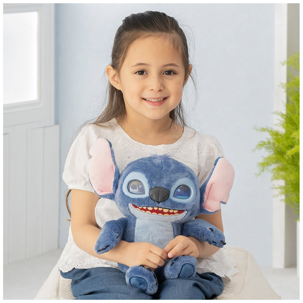 スティッチのいたずら好きで愛らしい個性を再現したインタラクティブぬいぐるみ。