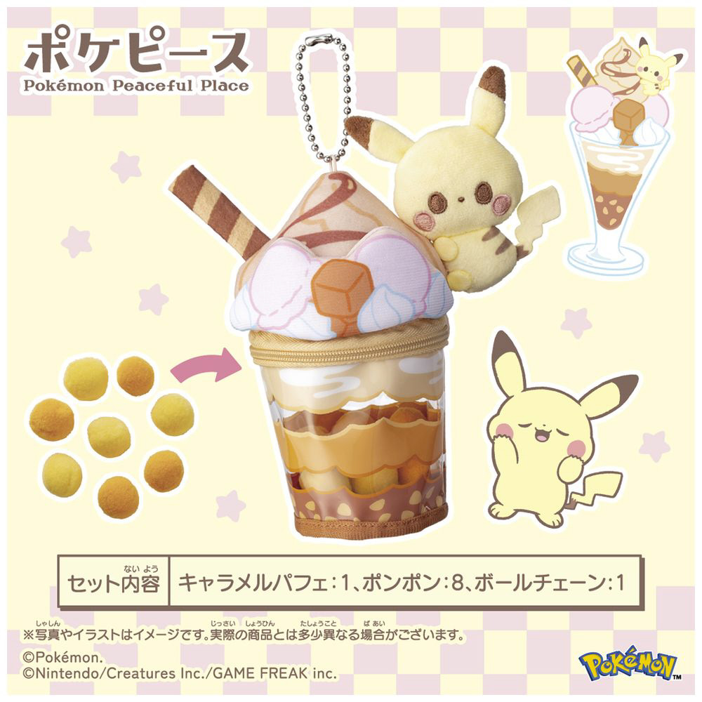 “ポケピース”から、かわいいピカチュウのキャラメルパフェぬいぐるみチャームが登場!