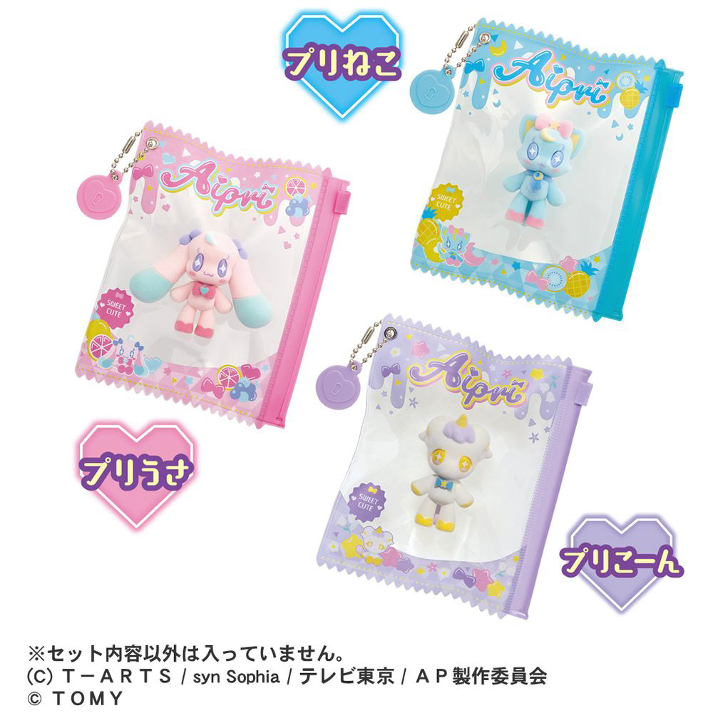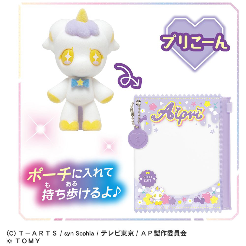 ふわふわ触感がかわいい!プリこーんの手のひらサイズのマスコットフィギュア。付属のポーチにマスコットやカードを入れて持ち歩いちゃおう♪