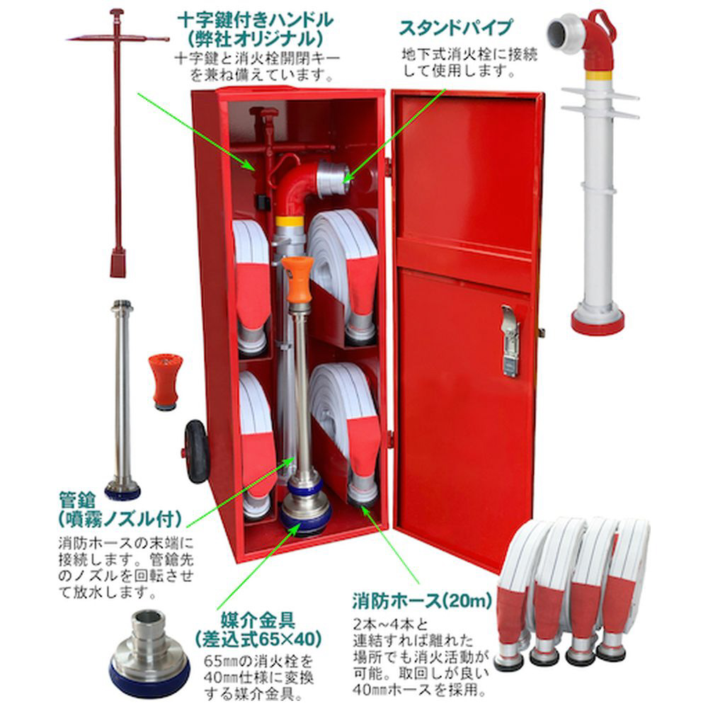 IWA 一般消防ホース仕様 開けてビックリ!火消し箱 災害/火災 消防活動用 消防ホース/資機材各種/タイヤ付き格納箱セット