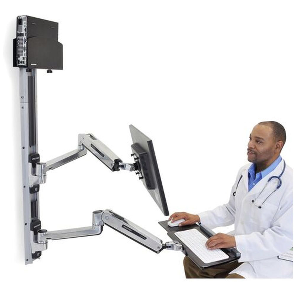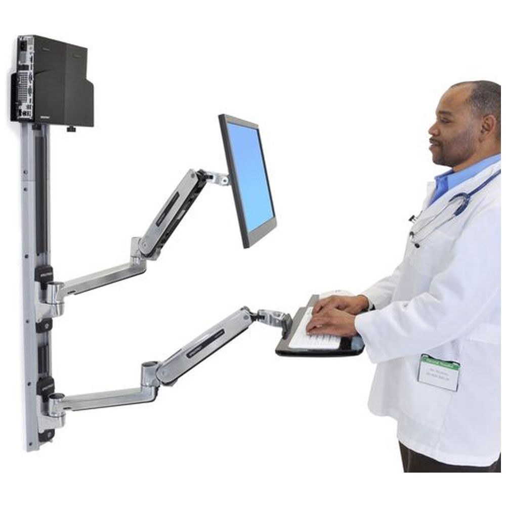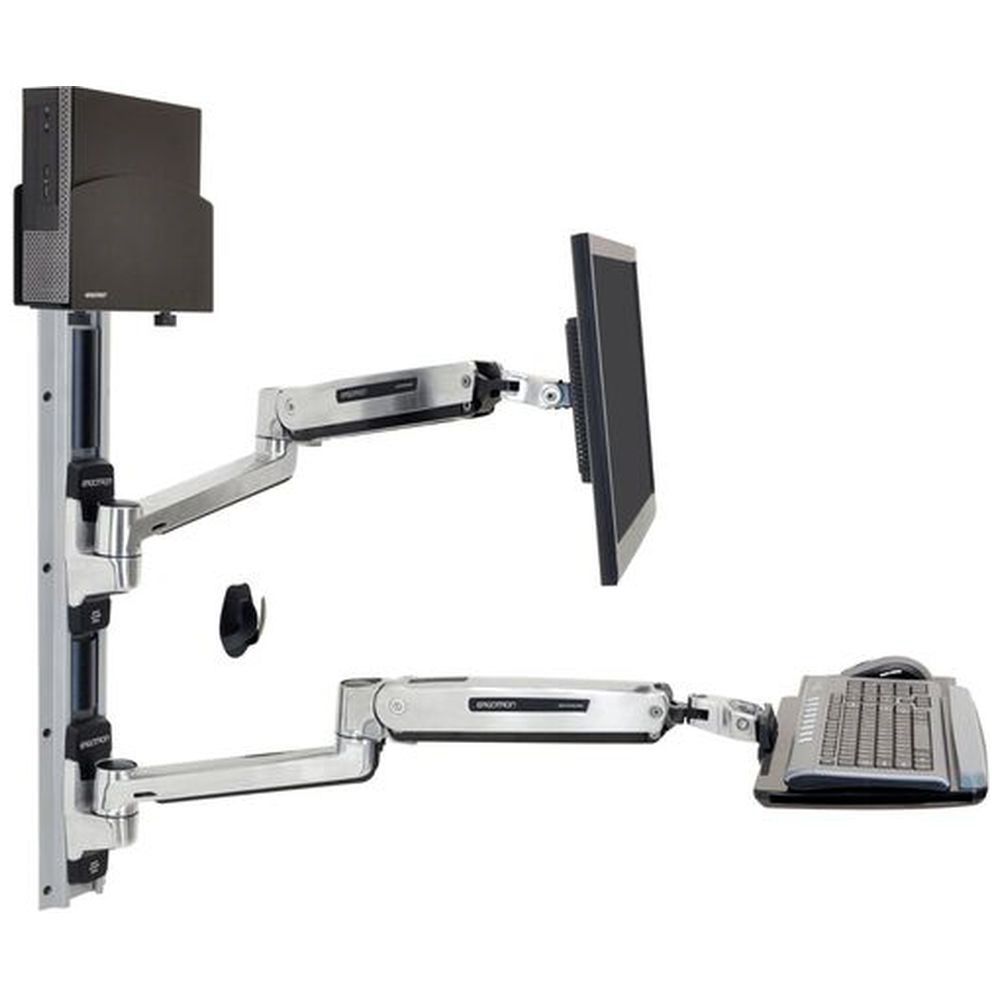 ERGOTRON LX 昇降式ウォールマウントシステム 小型CPUホルダー付き アルミニウム 42インチ(3.2〜11.3kg)まで VESA規格対応