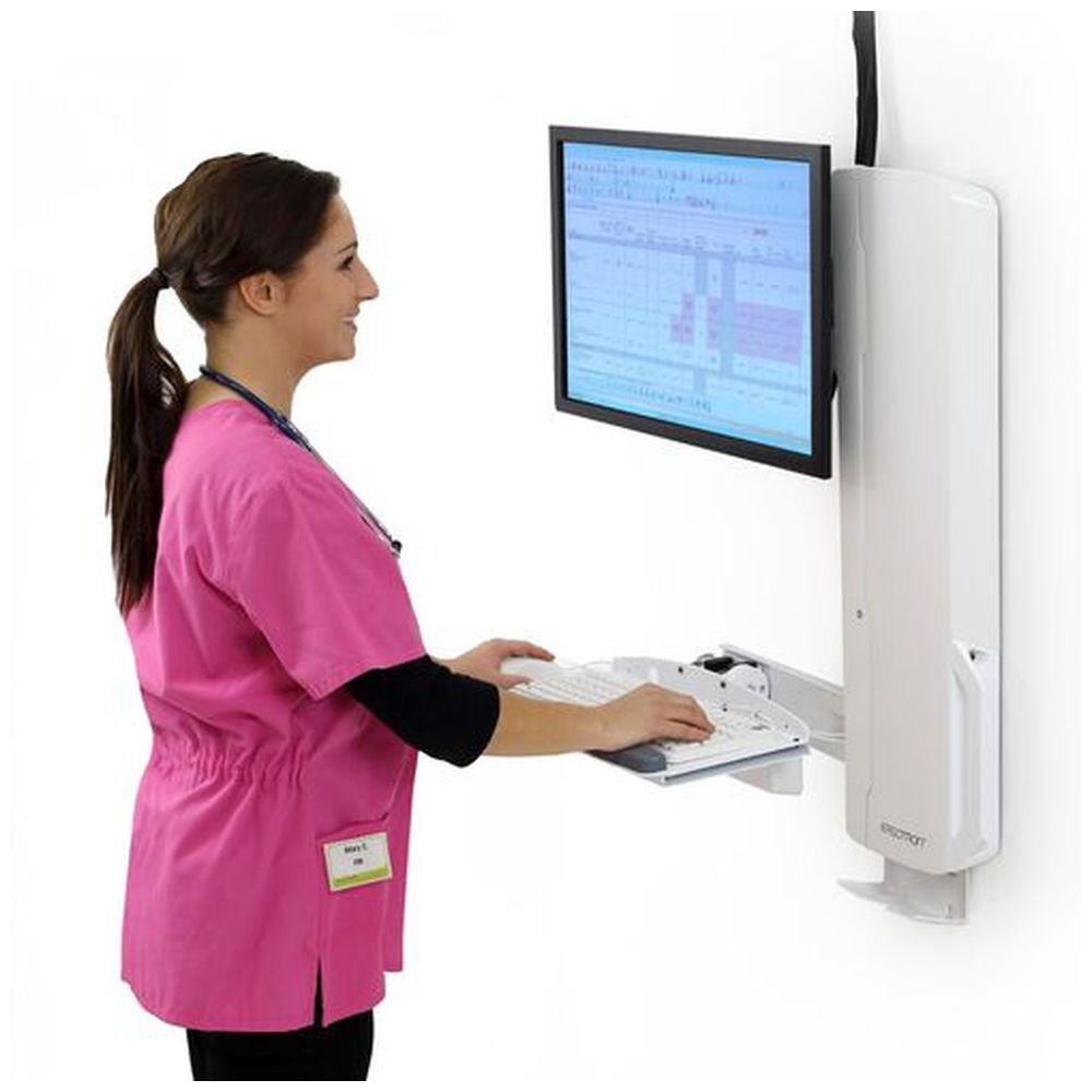 ■キーボードトレーは自動で格納されるので、混雑する工場の生産・製造ラインや病院に向いています。