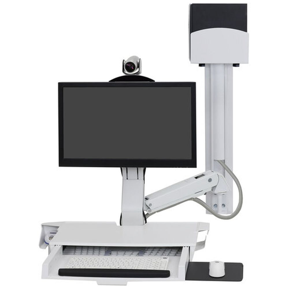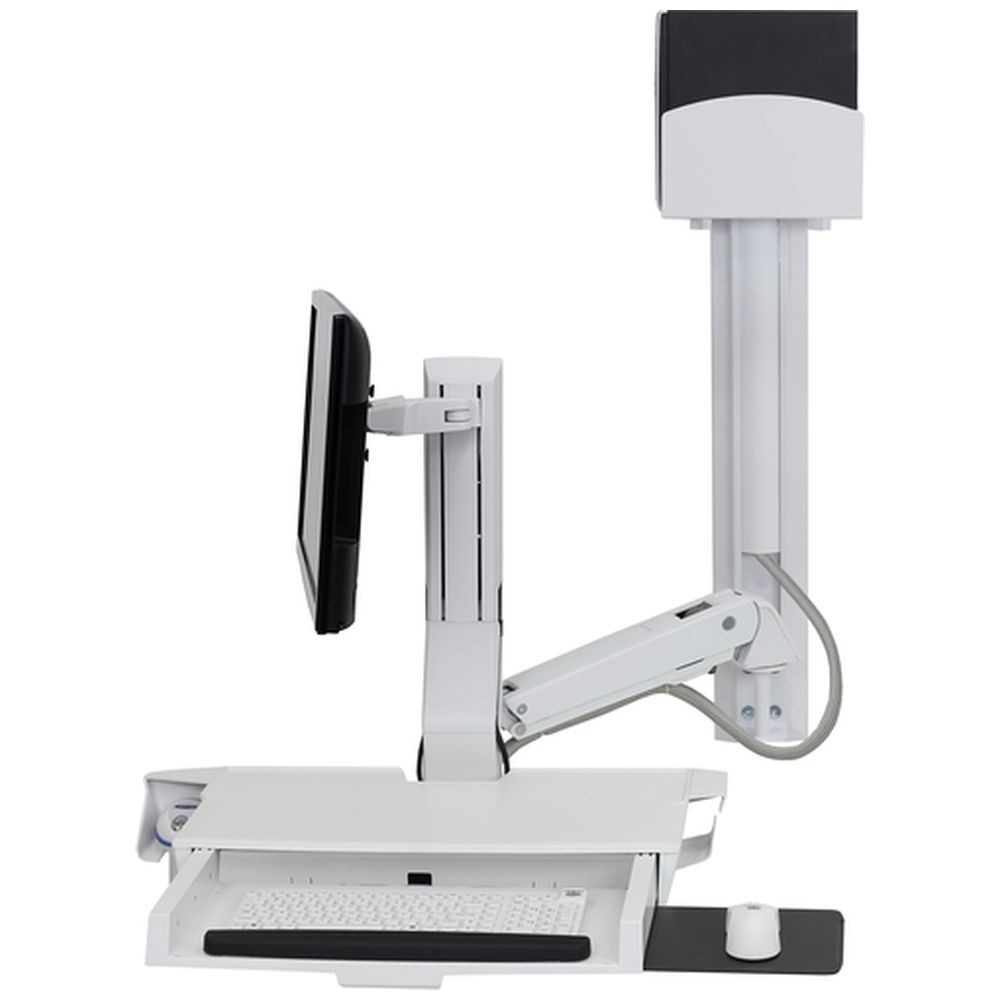 ERGOTRON StyleView 昇降式コンボアーム ワークサーフェス・パン・小型CPUホルダー付き ホワイト 24インチ(14.5kg)まで VESA規格対応