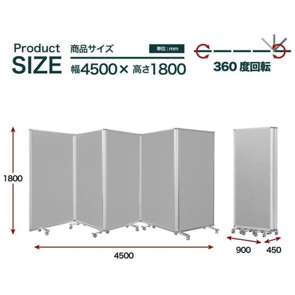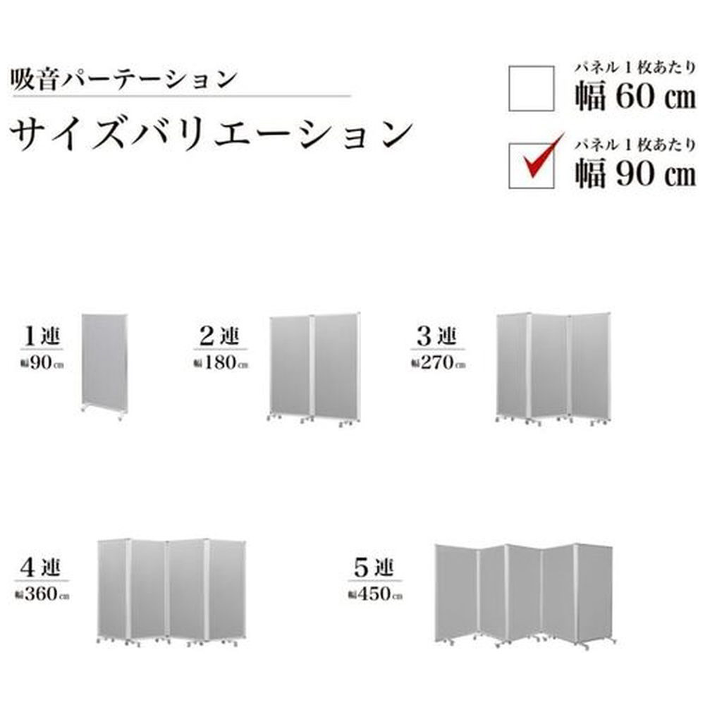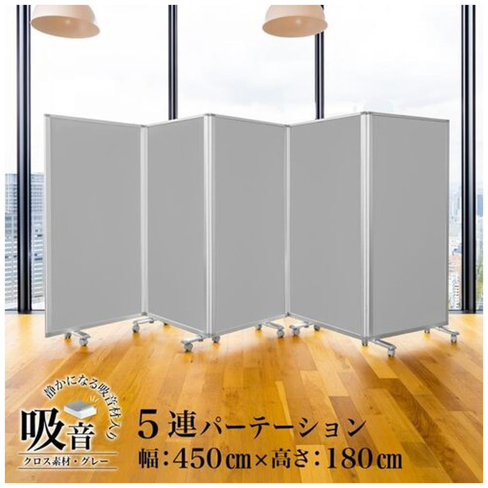 COMAI 5連吸音パーテション グレー シルバー枠 W4500×H1800