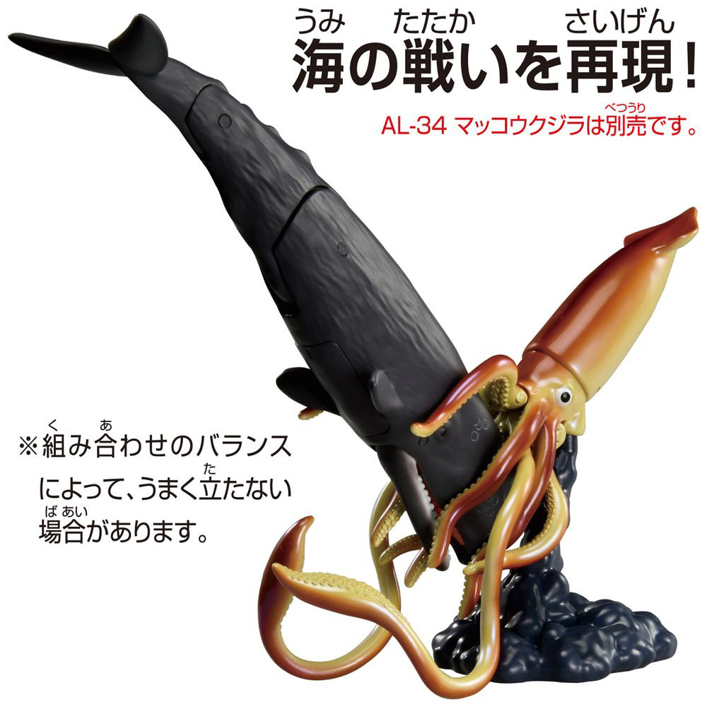 別売の「AL-34 マッコウクジラ」と組み合わせれば、図鑑イラストなどでお馴染みの深海の戦いシーンも再現できます。
