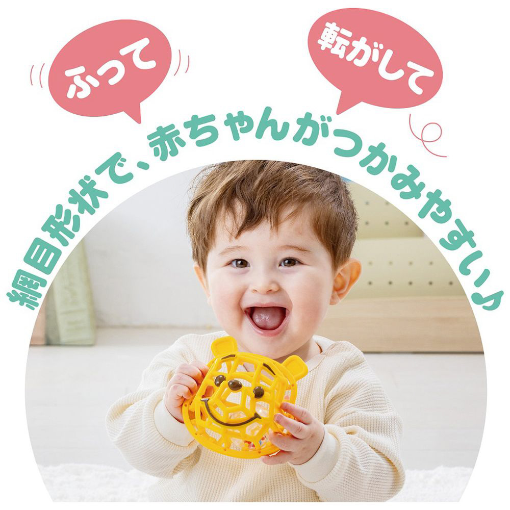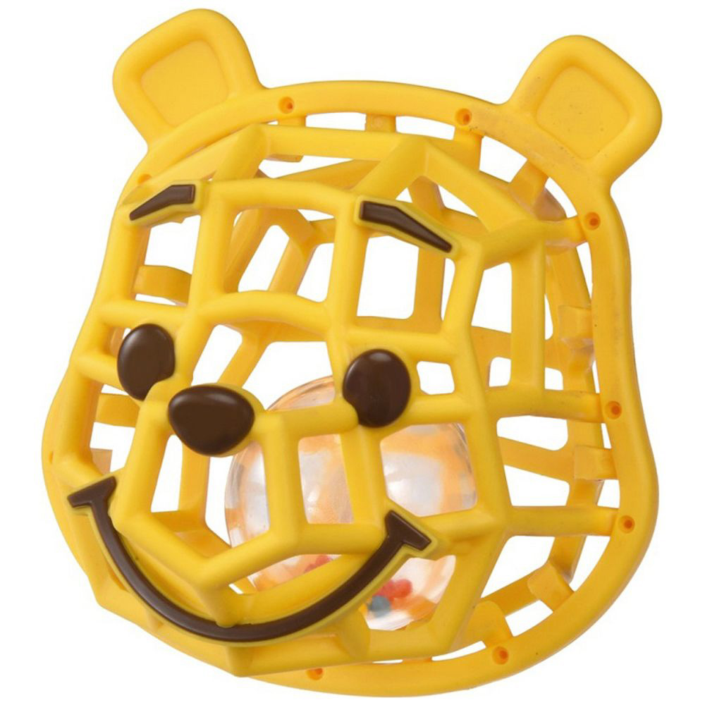 網目形状で、赤ちゃんがつかみやすい♪やわらかいくまのプーさんのガラガラです。
