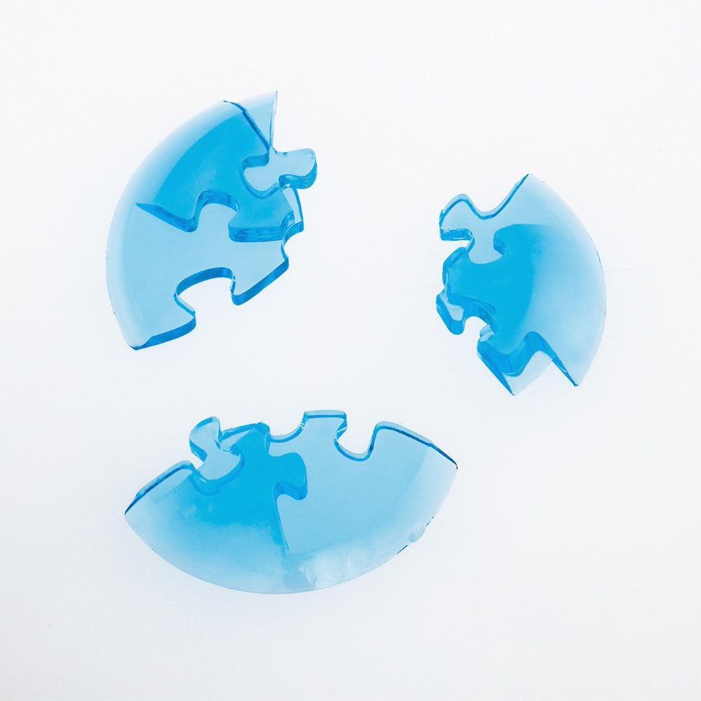 透明感のあるブルーで海を、立体的なシボ加工で大陸を表現しています。