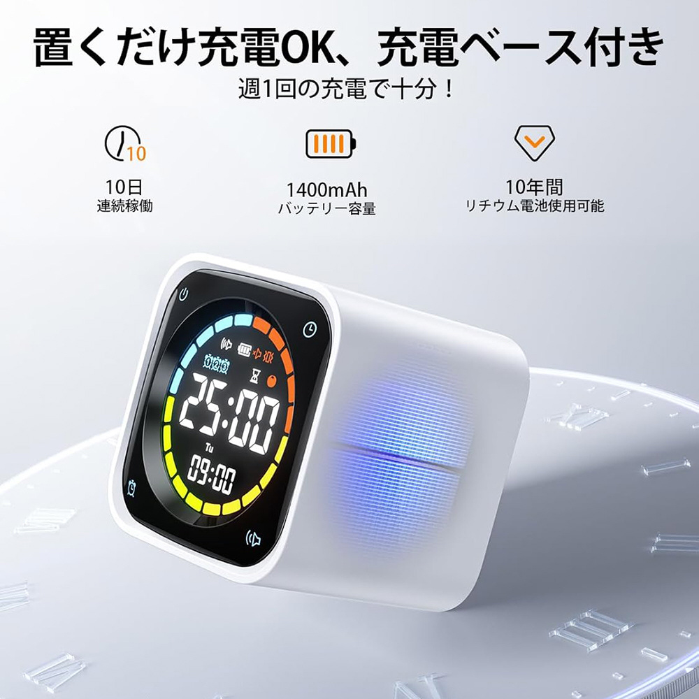 磁気吸着式の充電ベースにより、置くだけで安定した充電が可能となり、ユーザーの利便性を向上させています。