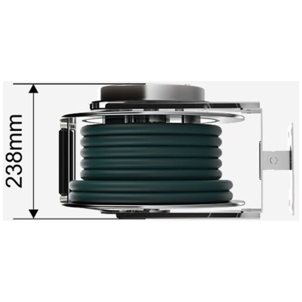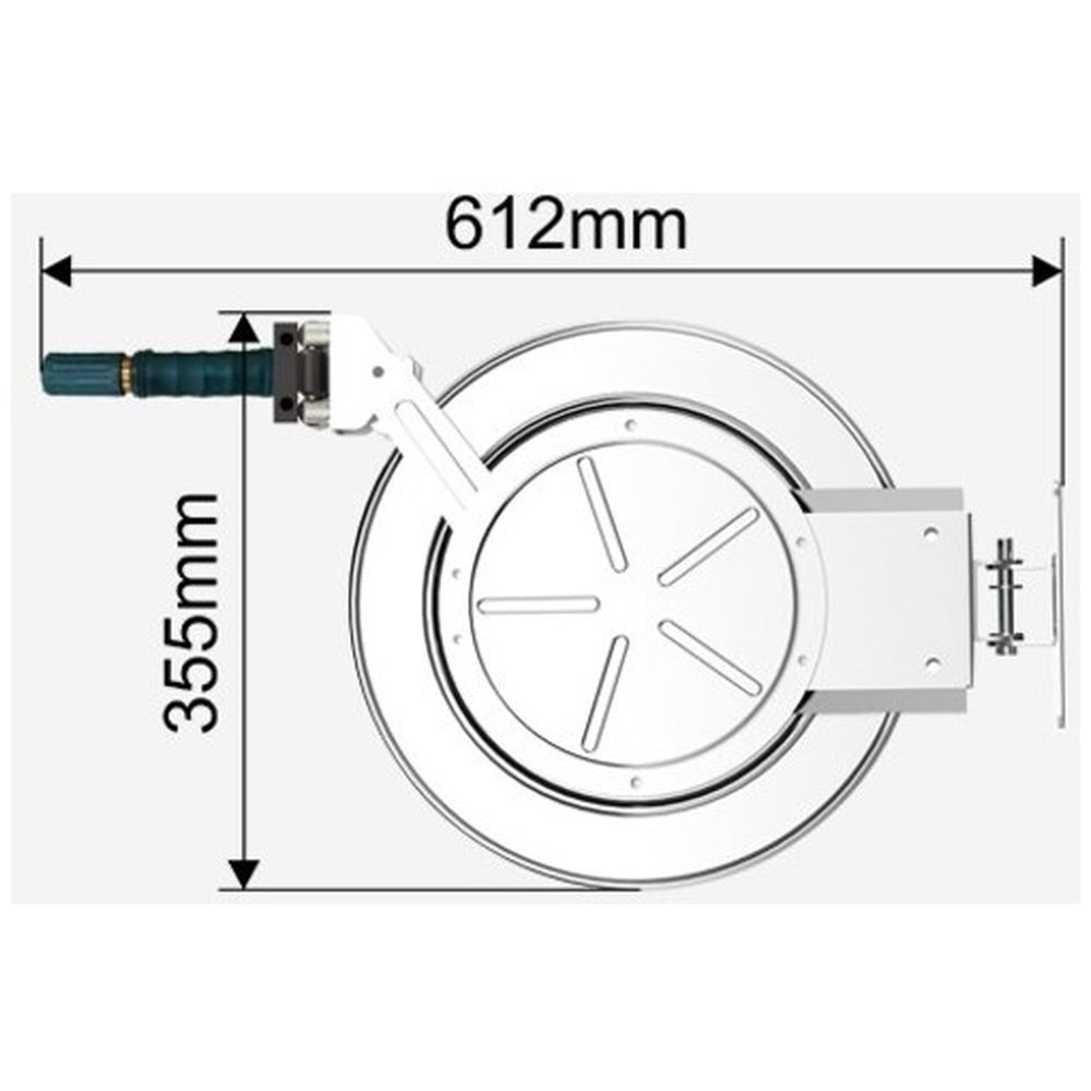 ステンレス仕様の水・温水用スプリング式自動巻ホースリールです。