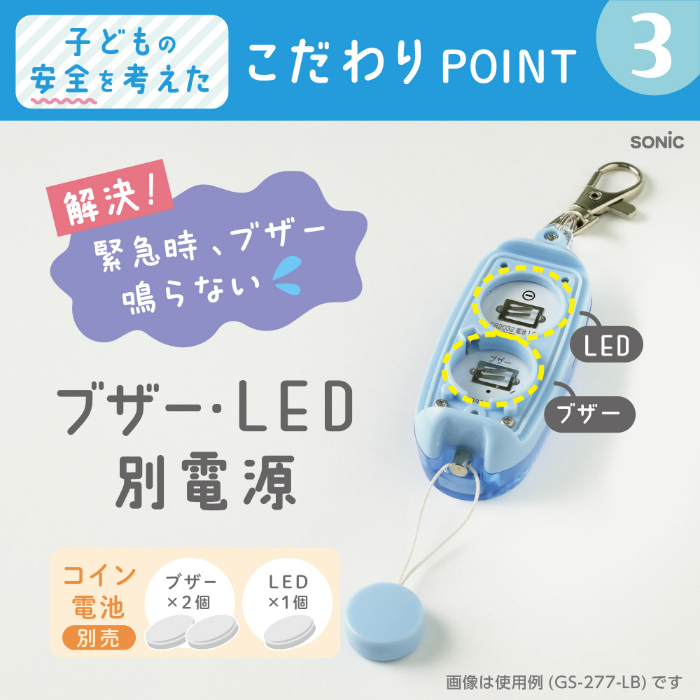 ■緊急時、ブザー鳴らない!を解決する、ブザーとLED別電源設計を採用(電池別売)