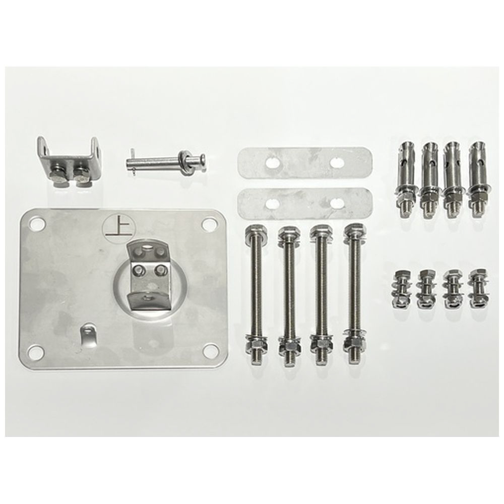 ・リールブラケット1式(ブラケットアッセンブリ x1セット,ブラケット固定用ピンアッセンブリ x1セット,アンカーボルト(3/8”: コンクリート壁取付用)×4セット,取付ボルト(M10×120L: EPSパネル取付用)×4セット,EPSパネルプレート ×2枚(EPSパネル取付時に背面で使用),取付ボルト(M10×25L: 鉄板取付用)×4セット