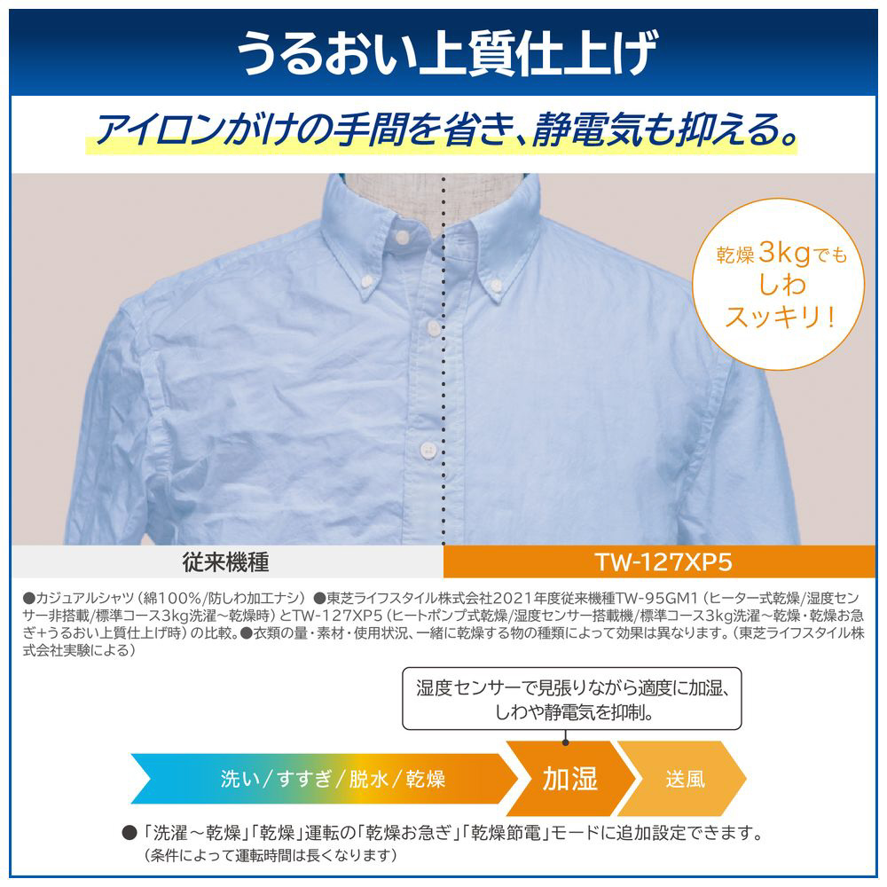 ドラム式洗濯乾燥機 ZABOON(ザブーン) グランホワイト TW-127XP5L-W [洗濯12.0kg /乾燥7.0kg /ヒートポンプ乾燥 /左開き]