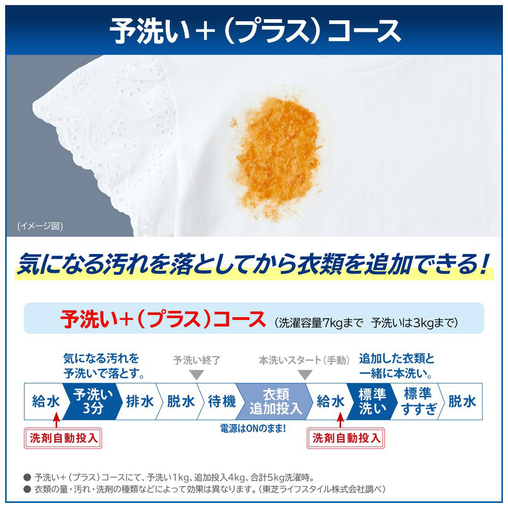東芝独自のモーターと、振動を吸収するクッションで静かさを追求。時間帯を気にせずお洗濯できます。<br