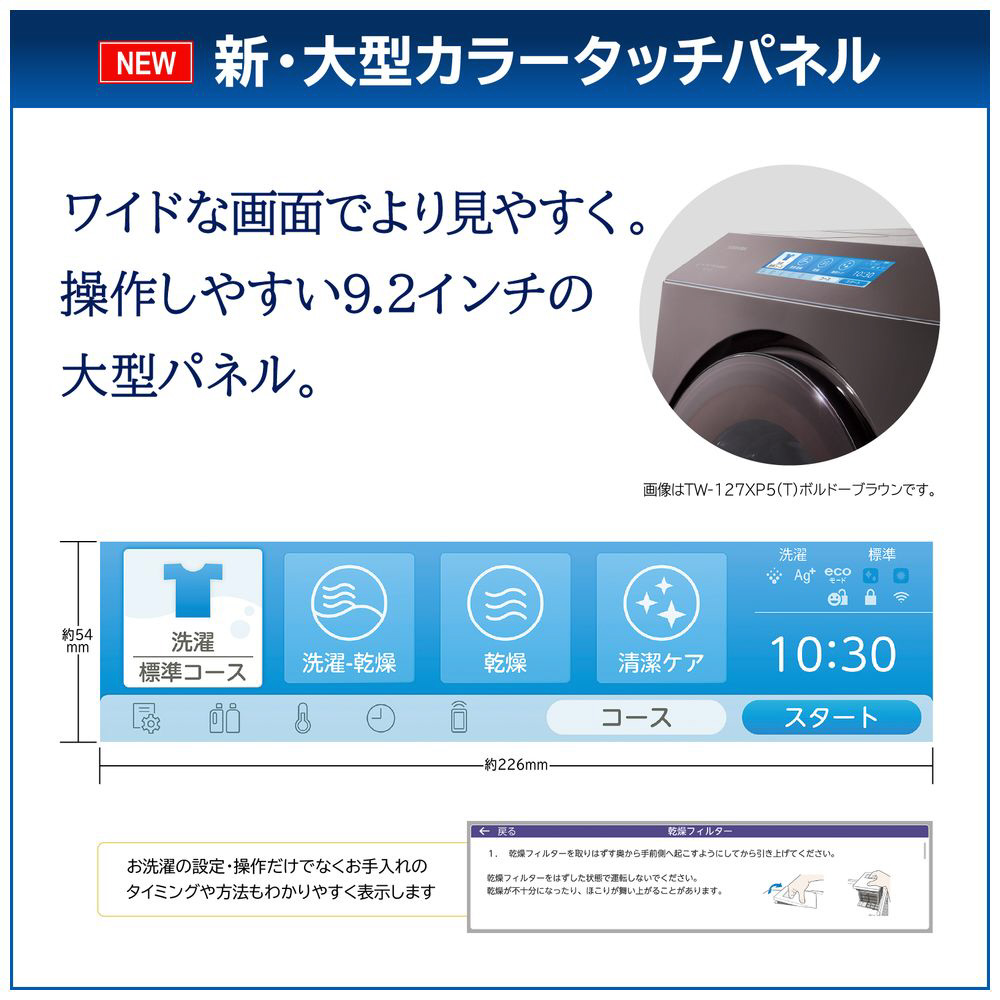 ドラム式洗濯乾燥機 ZABOON(ザブーン) ボルドーブラウン TW-127XP5L-T [洗濯12.0kg /乾燥7.0kg /ヒートポンプ乾燥 /左開き]