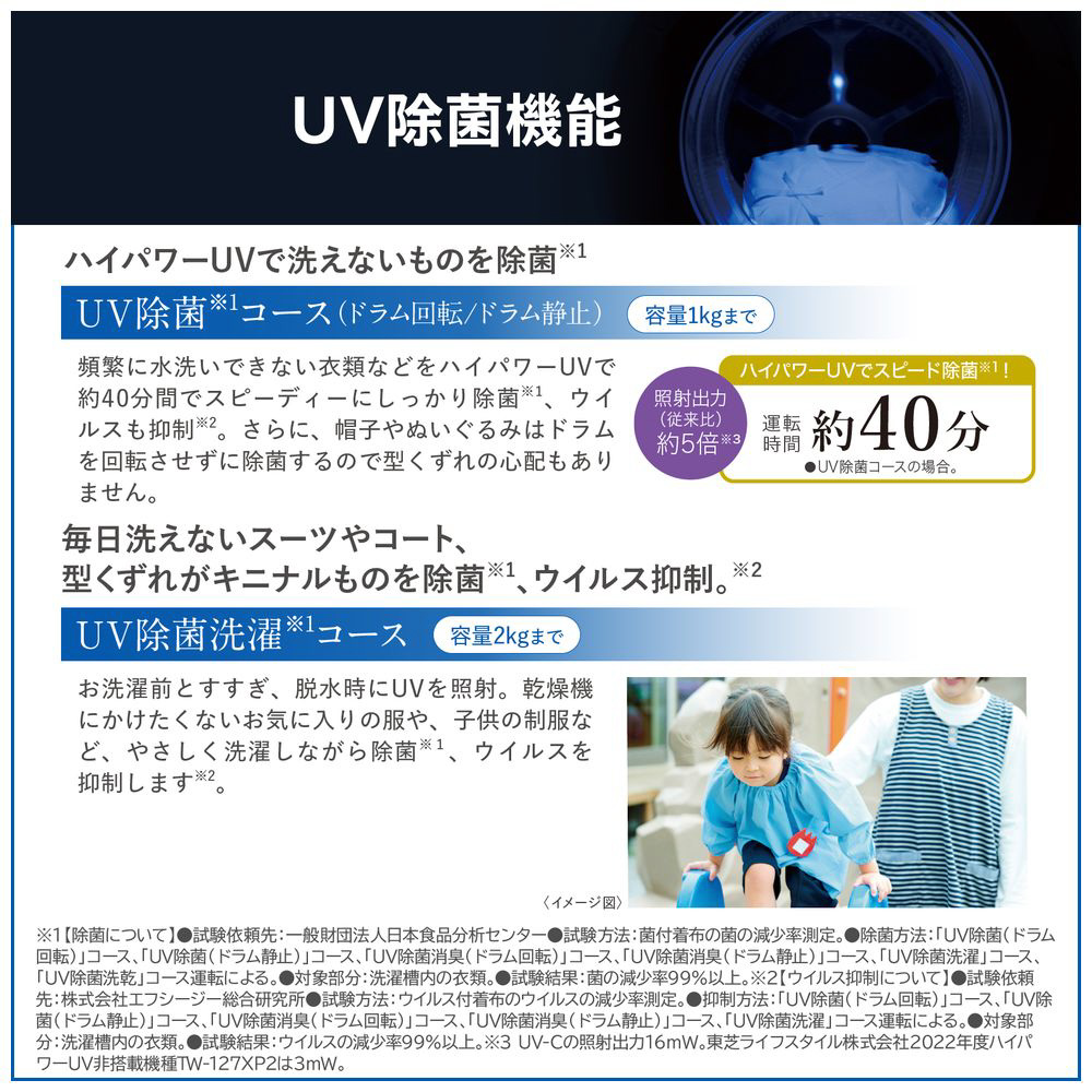 抗菌ウルトラファインバブル洗浄EX、液体洗剤・柔軟剤自動投入、ハイパワーUVを新搭載、大型カラータッチパネルの最上位モデル。