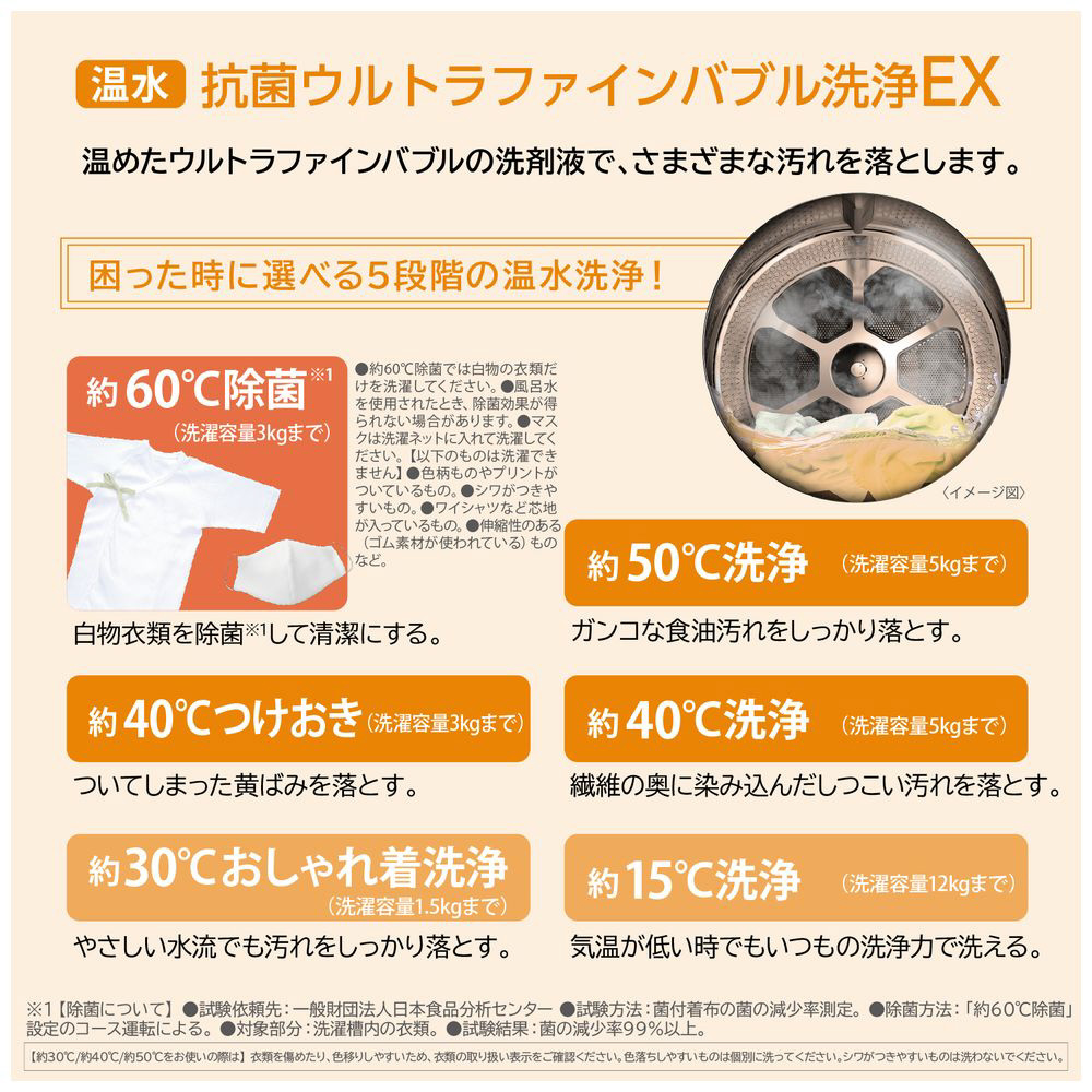さらに効果的に汚れが落とせる温水抗菌ウルトラファインバブル洗浄EX。温水で洗剤の効果を高め、さらにキレイ!