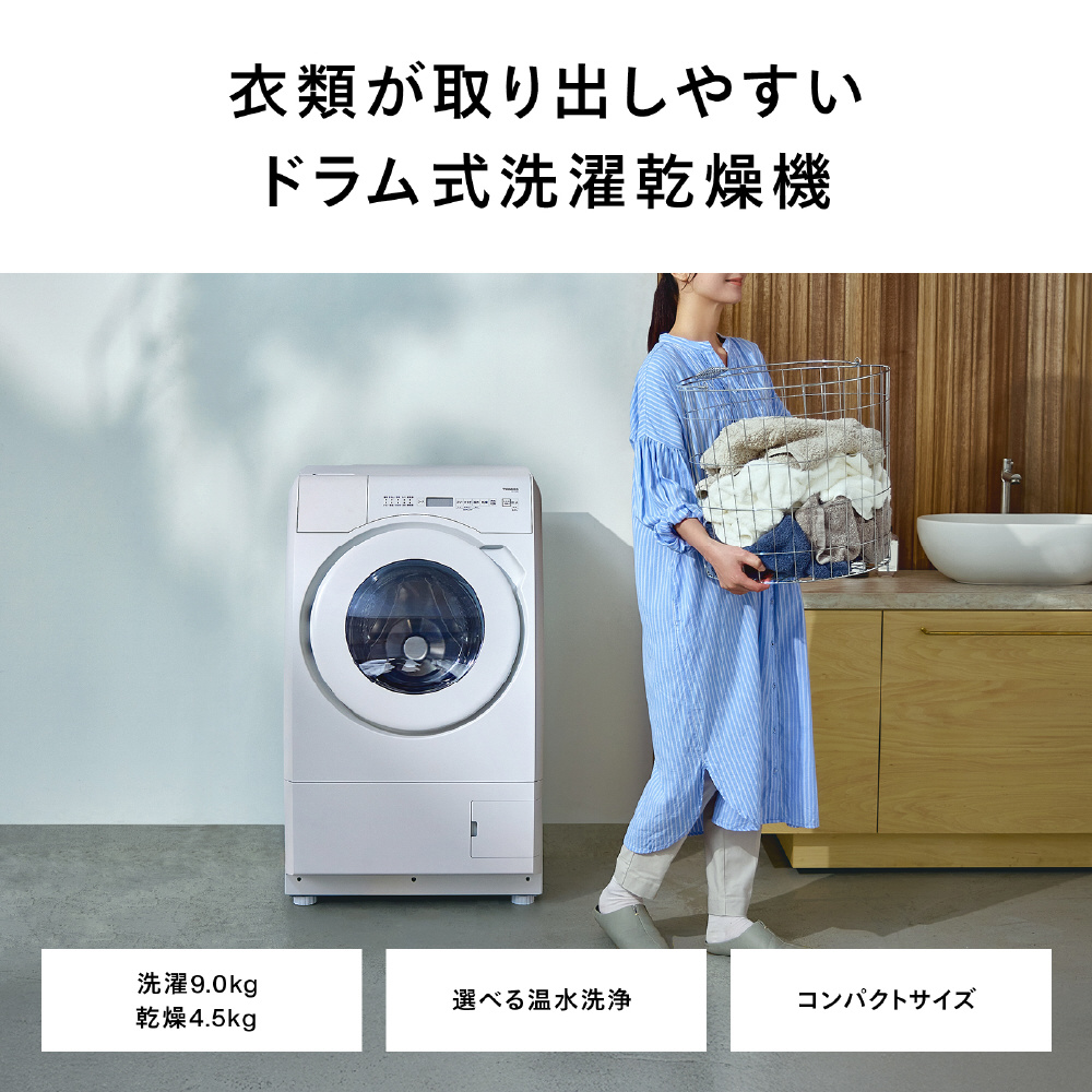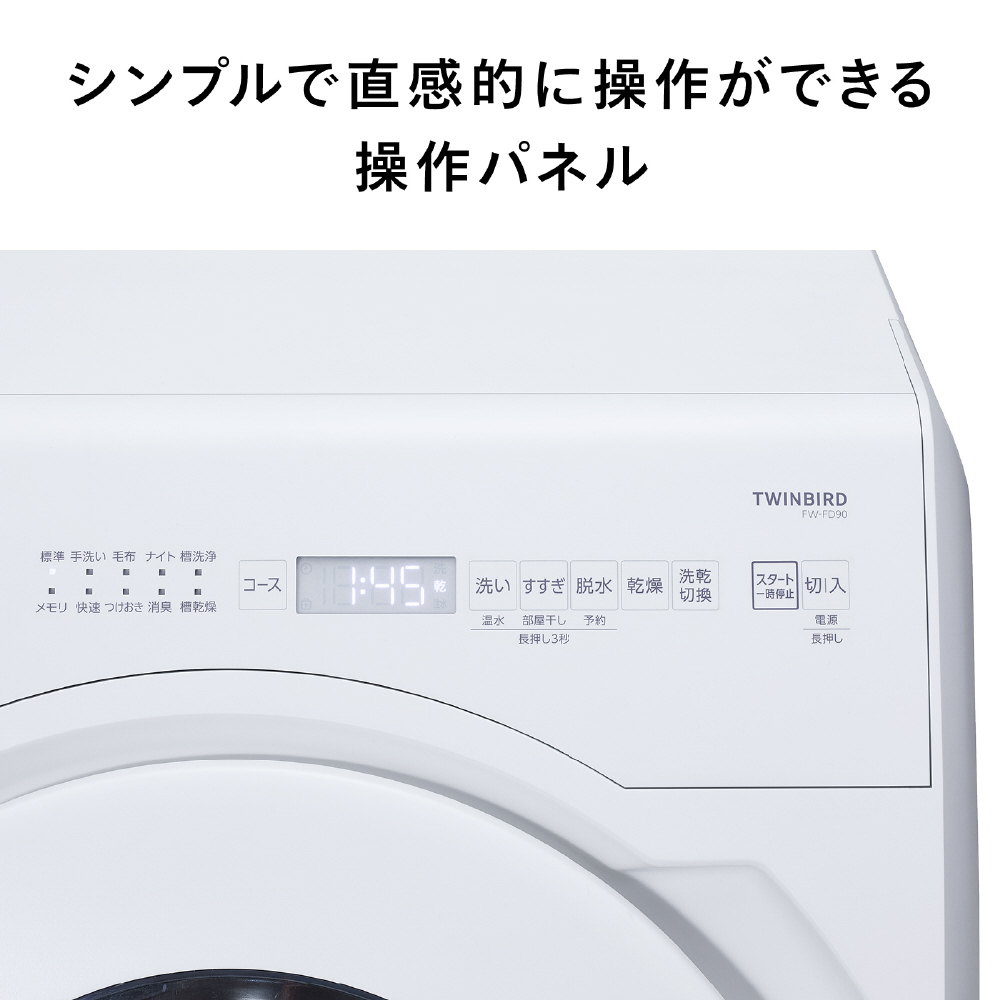 ドラム式電気洗濯乾燥機 ツインバード ホワイト FW-FD90W [洗濯9.0kg /乾燥4.5kg /ヒーター乾燥(水冷・除湿タイプ) /左開き]