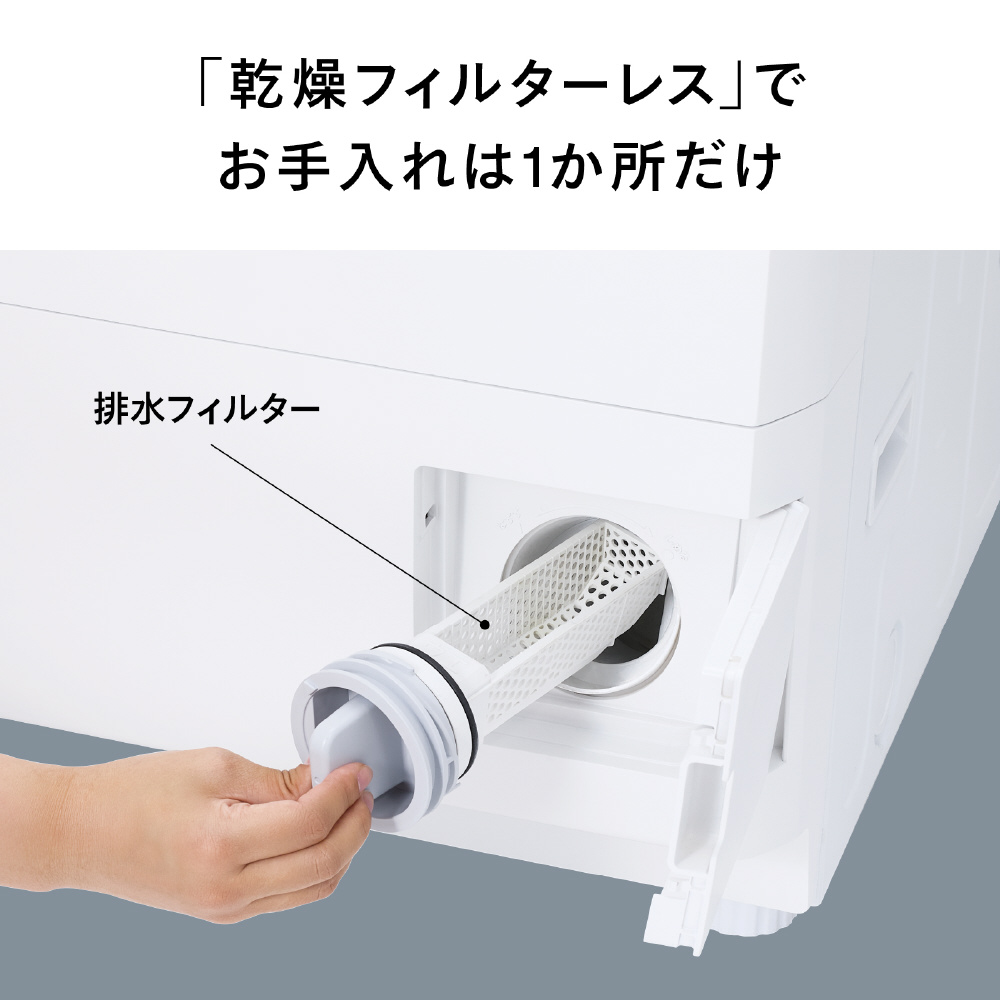 乾燥フィルターを自動でおそうじする構造なので、フィルターお掃除の手間が少ない。日々の生活でより使いやすいドラム洗濯機。