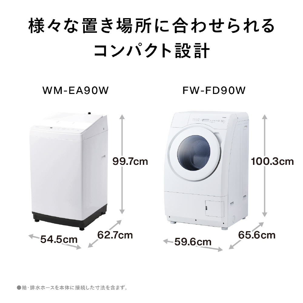 1.マンションサイズで大容量9kg/4.5kg洗濯機