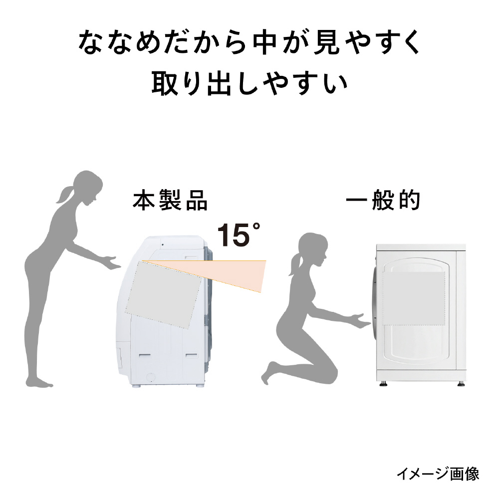 業界最大クラスの傾き15°ドラムで衣類の取り出しもしやすいモデルです。