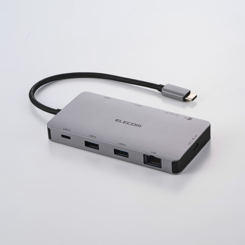[USB-C オス→メス カードスロットx2 / HDMI / LAN / USB-Ax3 / USB-Cx2] USB PD対応 140W ドッキングステーション シルバー DST-090BP1SV [USB Power Delivery対応]