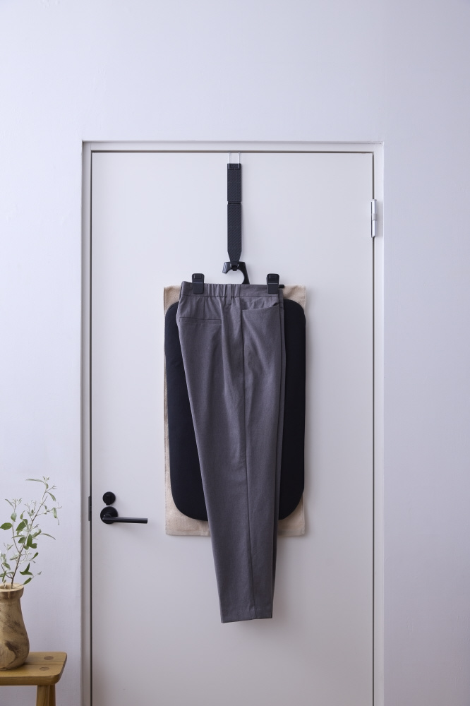■付属の専用ドアフックを使えば、クローゼットや部屋の扉に簡単に取り付けることができ、ハンガーにかけたままの衣類をそのままスチームをかけて衣類の恥までしっかりとシワ伸ばしができます。