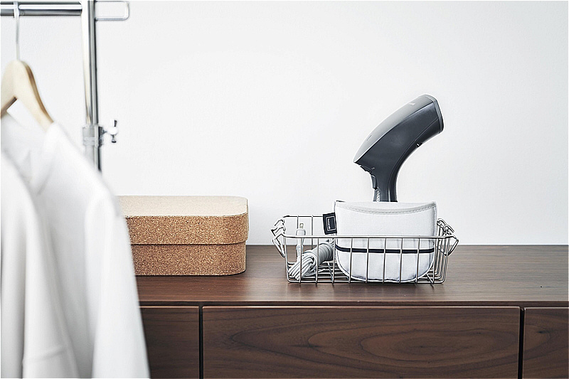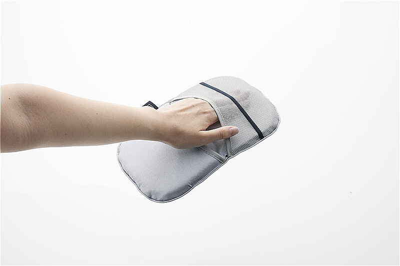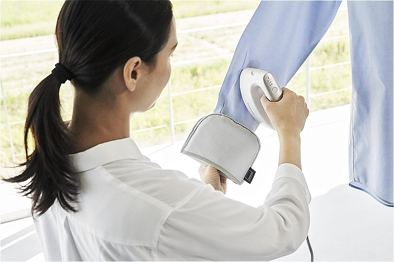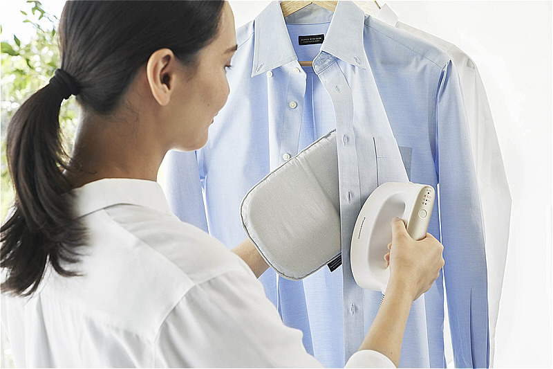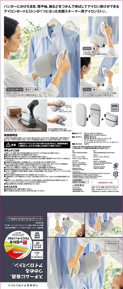 ハンガーにかけたまま、襟や袖、裾などをつかんで引っ張ることでシワを伸ばしながらアイロン掛けができる!アイロンボードとミトンが1つになった衣類スチーマー用アイロンミトンです。