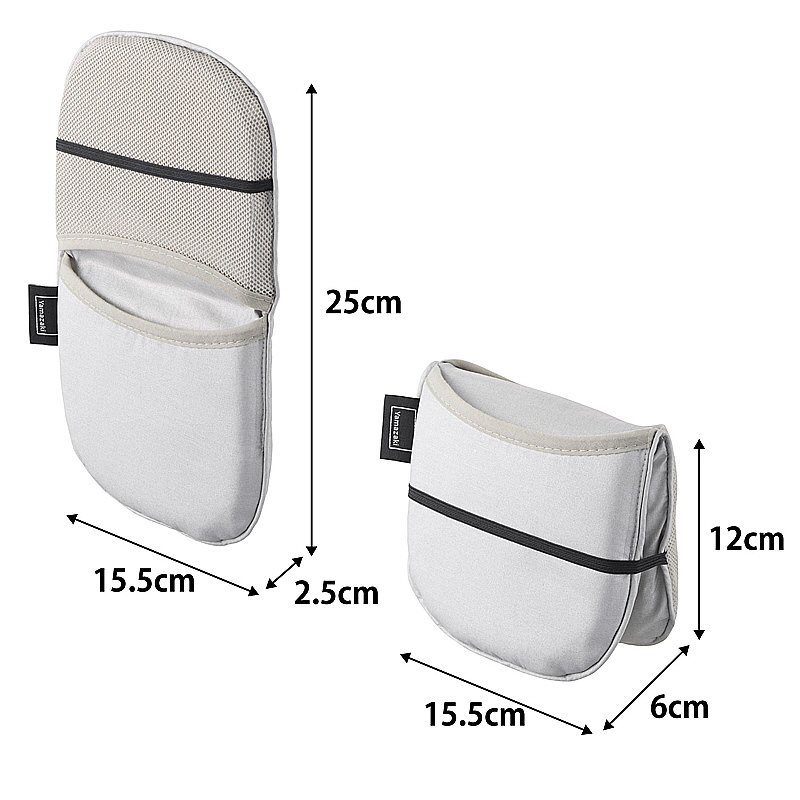 ハンガーにかけたまま、襟や袖、裾などをつかんで引っ張ることでシワを伸ばしながらアイロン掛けができる!アイロンボードとミトンが1つになった衣類スチーマー用アイロンミトンです。掛け面やポケット片側はアルミコーティングされているので、スチームを通しにくく安心して使用できます。折り畳んで、コンパクト収納できるゴムバンド付き。