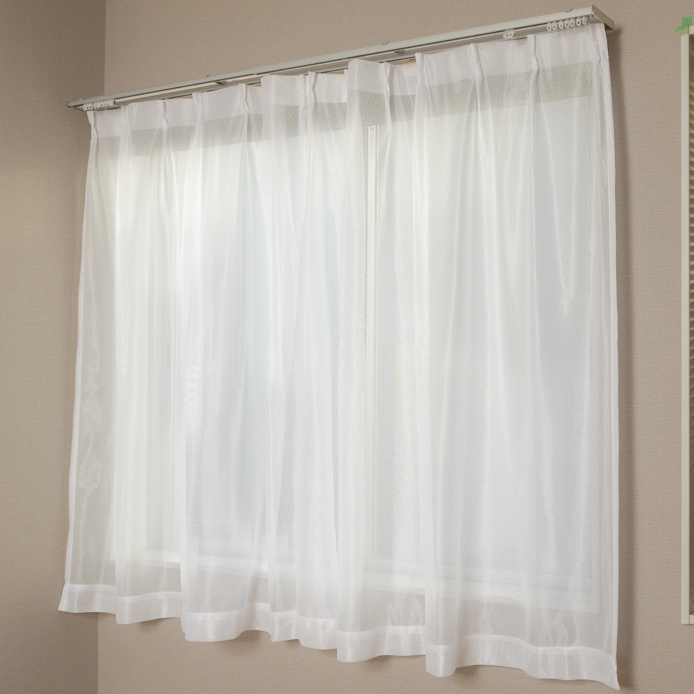 【花粉キャッチ加工】 2枚組レースカーテン ビッツ ホワイト [幅100×丈176cm]
