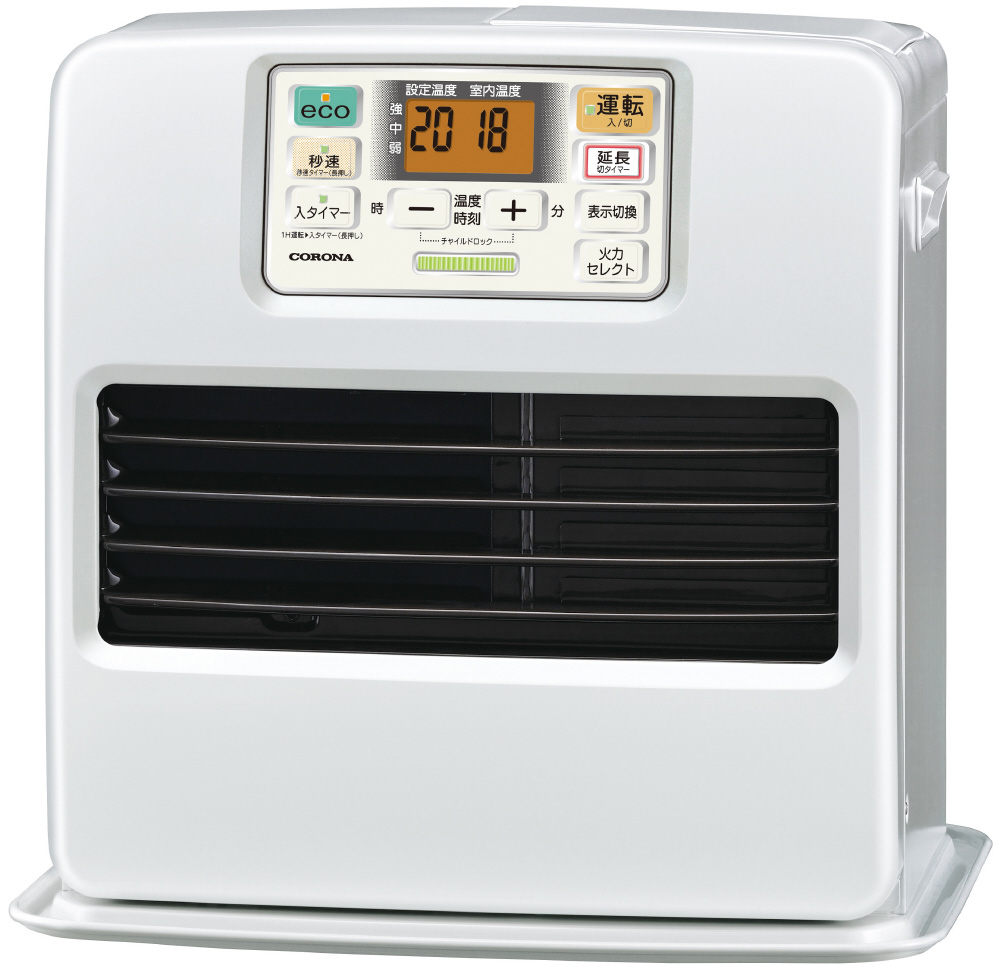新ecoモードで節約。ワンタッチで省エネ運転。大型オレンジ液晶で見やすく使いやすい。「お知らせサイン」で灯油切れもひと目で分かる!