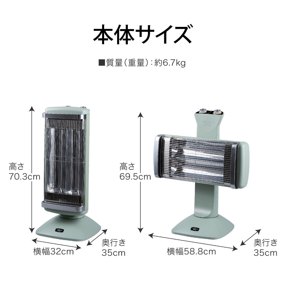 遠赤グラファイトヒーター(2灯管) 電気ストーブ 電動縦横ローテーション グリーン CAH-2G10G/G [グラファイトヒーター /人感センサーなし /首振り機能]