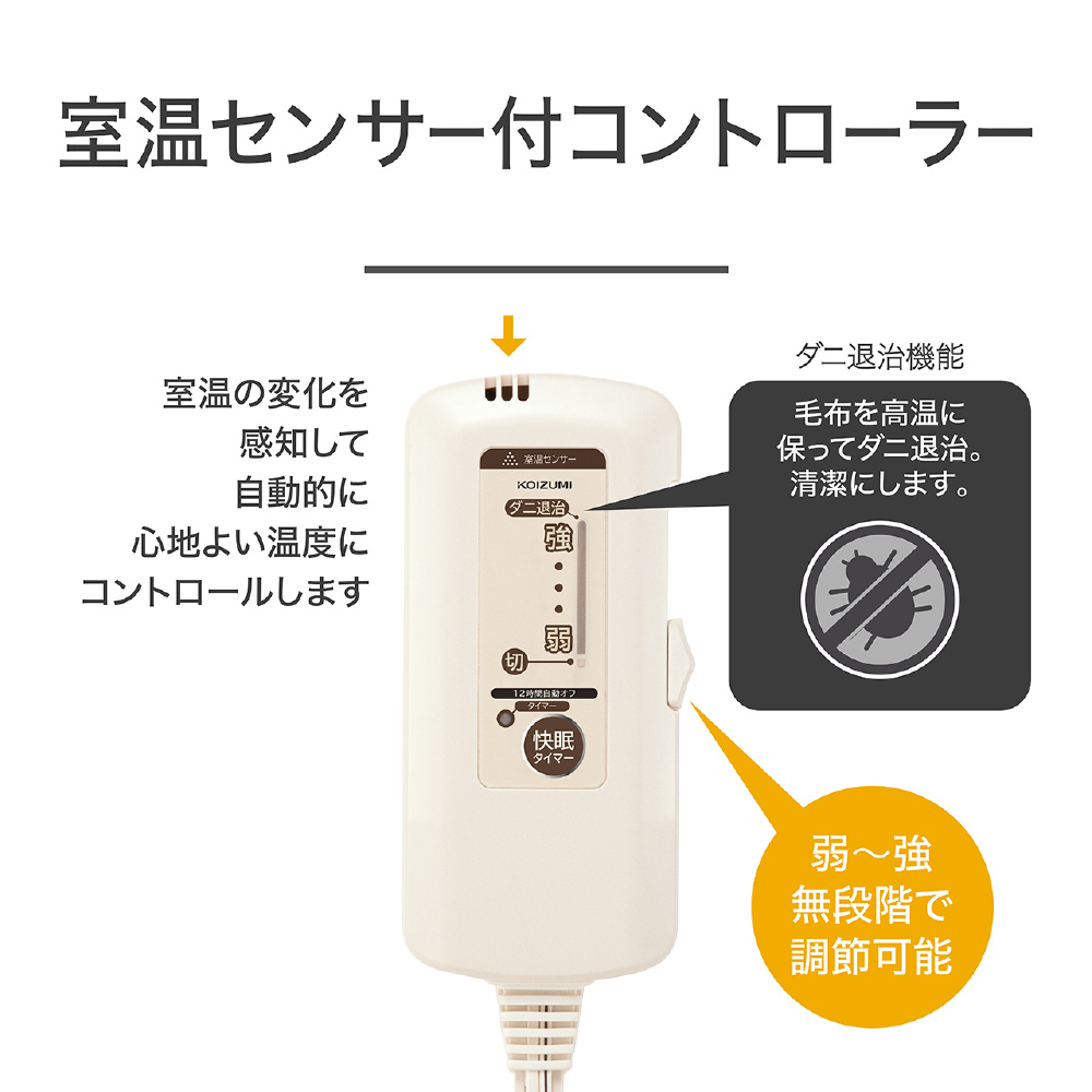 頭寒足熱配線/ダニ退治/抗菌防臭加工/室温センサー/毛布部分水洗いOK