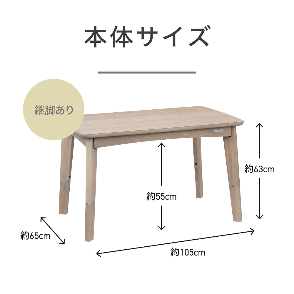 ソファ用こたつ コイズミ グレーウォッシュ KSR-33251/H [約60×105cm /長方形]