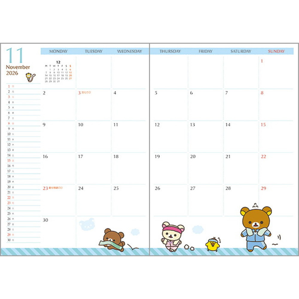 リラックマ ME67406 糸とじ手帳B6マンスリー