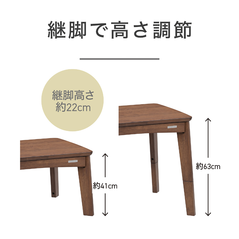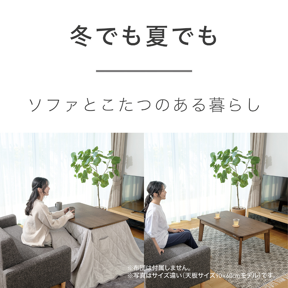 継脚の付け外しで一年中使えるソファに合わせやすいこたつ