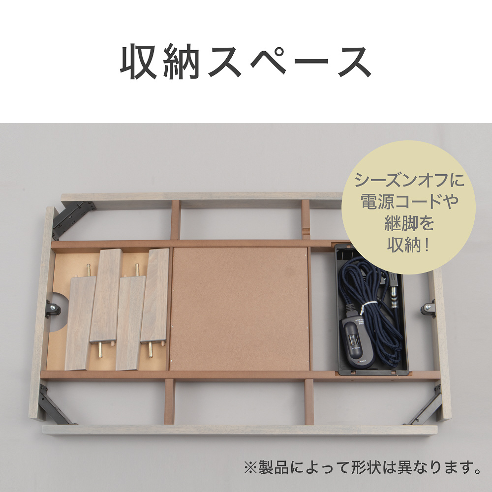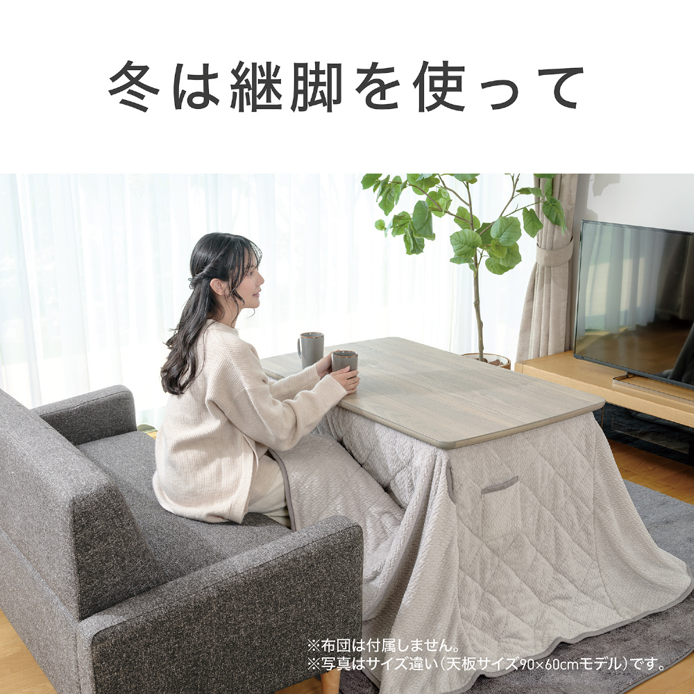 継脚の付け外しで一年中使えるソファに合わせやすいこたつ