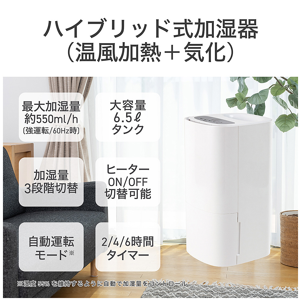ハイブリッド式加湿器 ホワイト KHM-5552/W [ハイブリッド(加熱+気化)式]