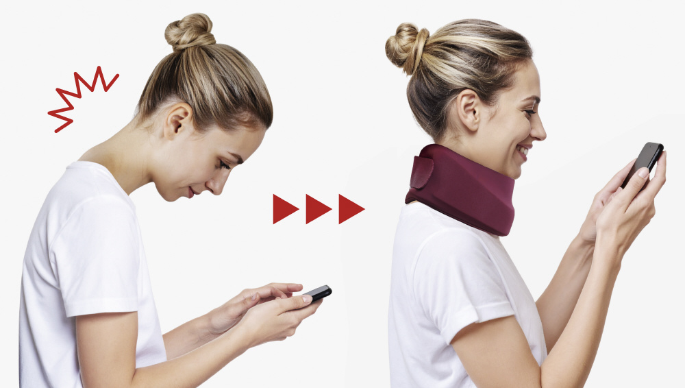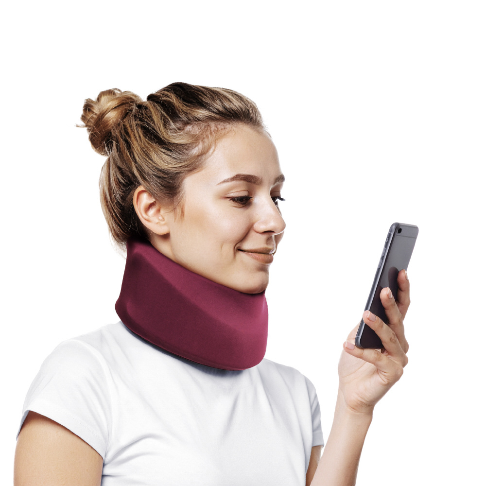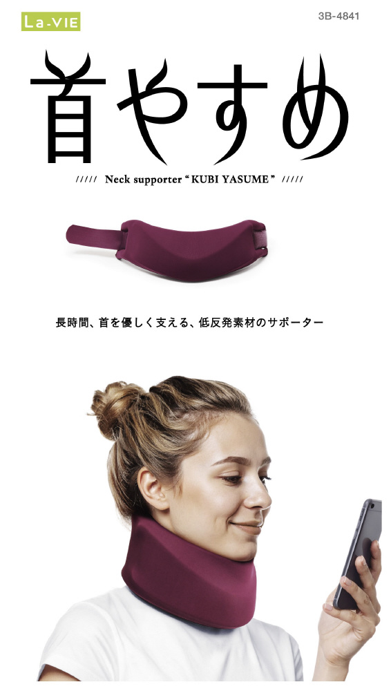長時間、首をやさしく支える、低反発素材のサポーター。