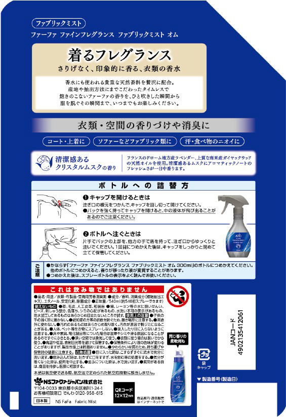 FaFa(ファーファ)ファインフレグランス ファブリックミスト オム 詰替 540ml