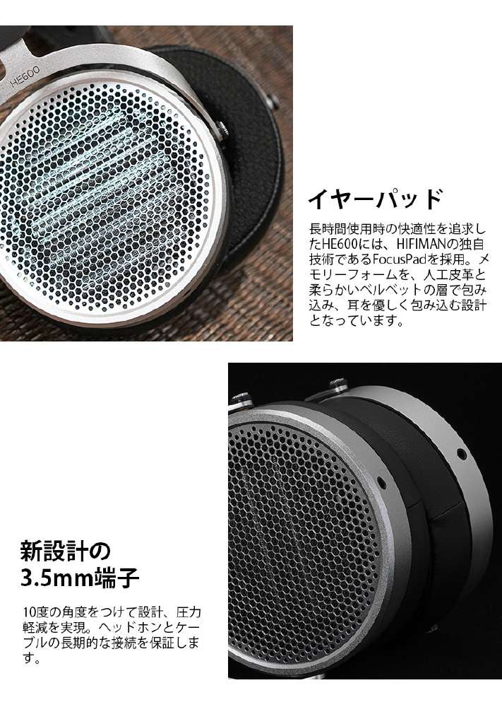 HE600ヘッドフォンは、通常のイヤーアンプ駆動でHE6とフルアンプの音色を再現し、軽量化により快適性と信頼性を大幅に向上させています。
